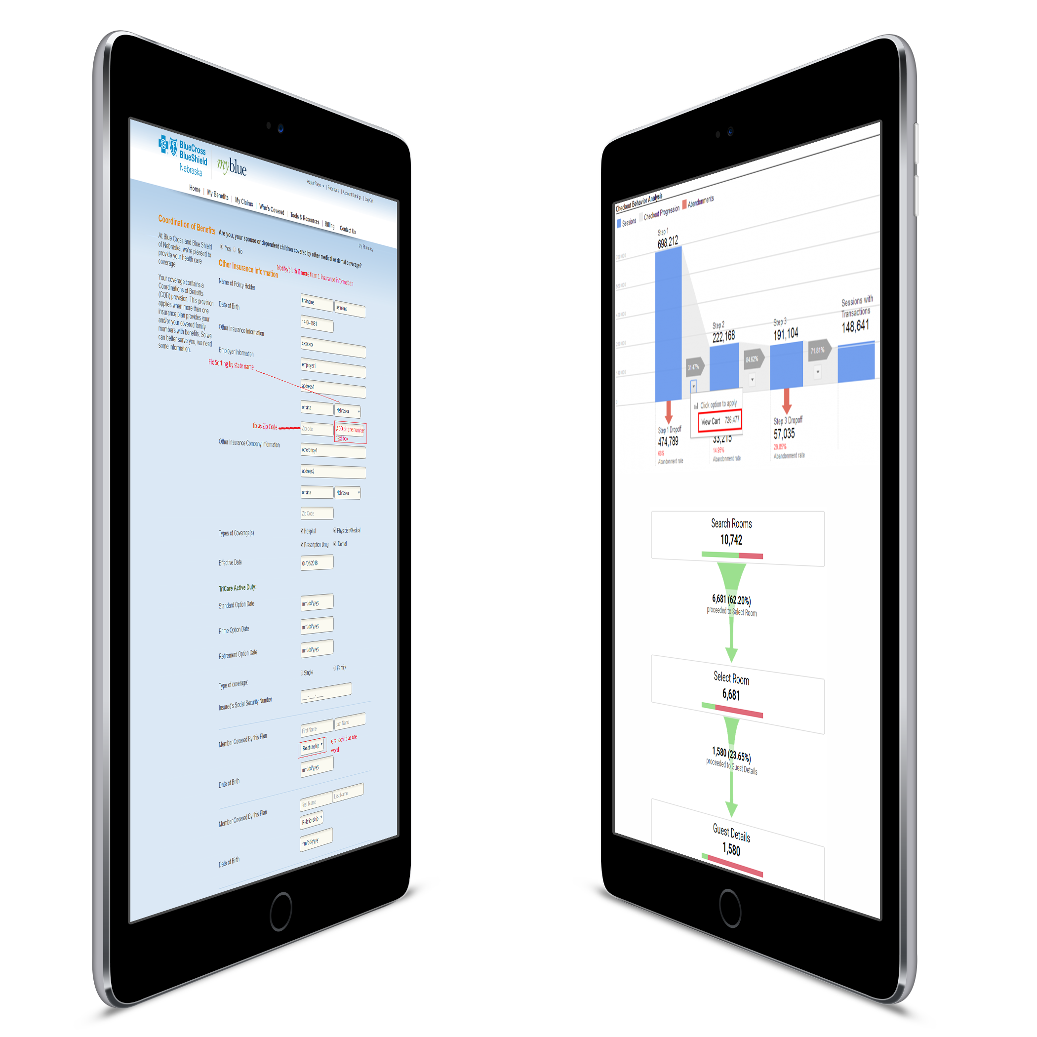 Armed with data, I identified our biggest conversion killers: Coordination of Benefits and Registration flows were hemorrhaging users.